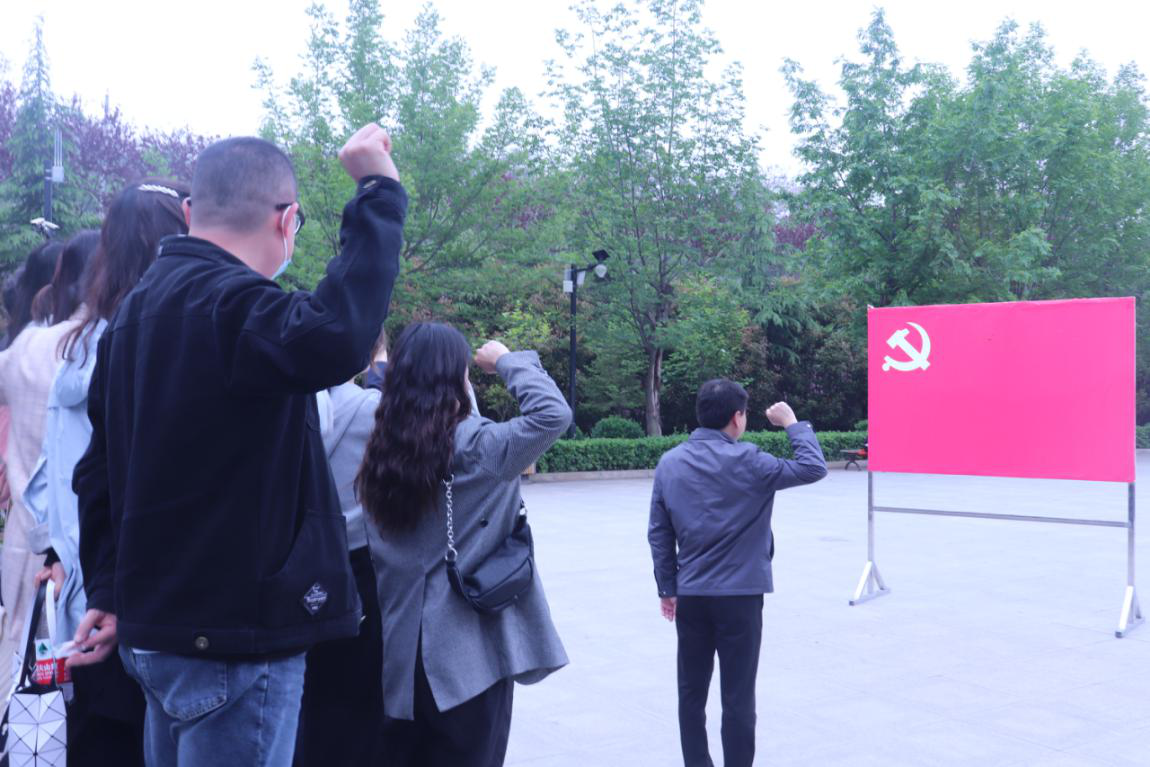 大家首先来到八路军豫西抗日纪念馆。参观前,在WilliamHill威廉希尔党委书记熊俊杰的带领下,全体党员举起右手、握紧拳头,面对鲜红的党旗庄严宣誓,在党旗下接受洗礼,坚定入党初心,牢记共产党员的政治责任和历史使命。