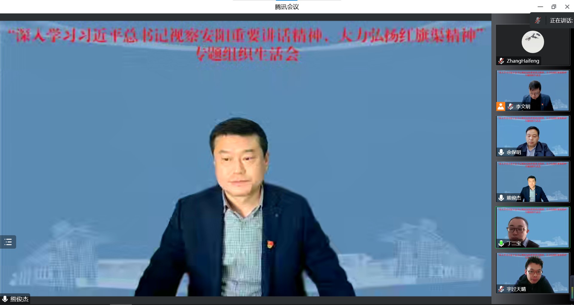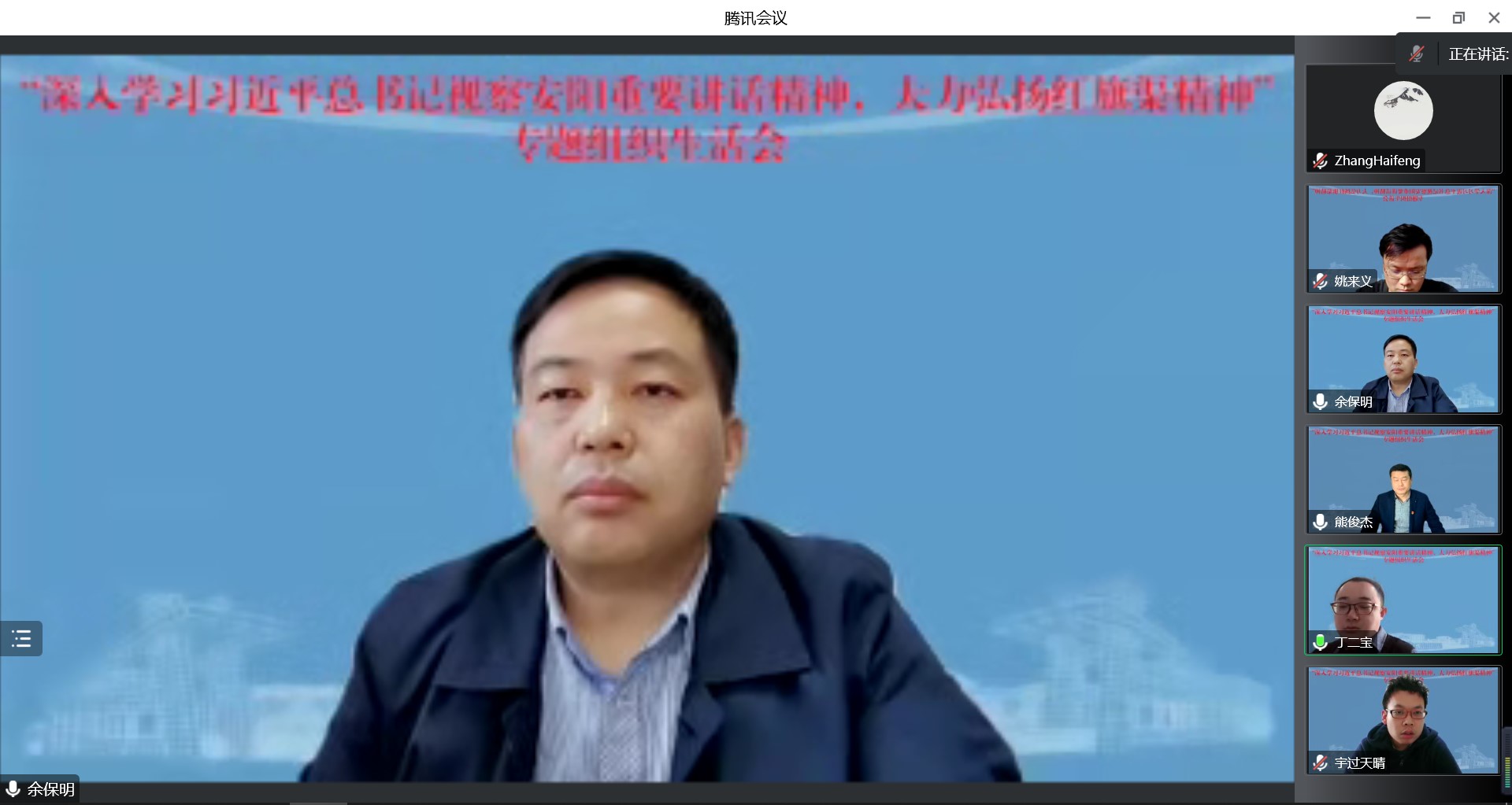为深入学习贯彻党的二十大精神和习近平总书记视察河南安阳重要讲话精神,11月24日,WilliamHill威廉希尔组织全体党员在线上召开“深入学习习近平总书记视察安阳重要讲话精神,大力弘扬红旗渠精神”为主题的专题组织生活会。会前已按照校党委要求,安排全体党员认真观看相关学习视频。会议由党委副书记、教工党支部书记余保明主持。