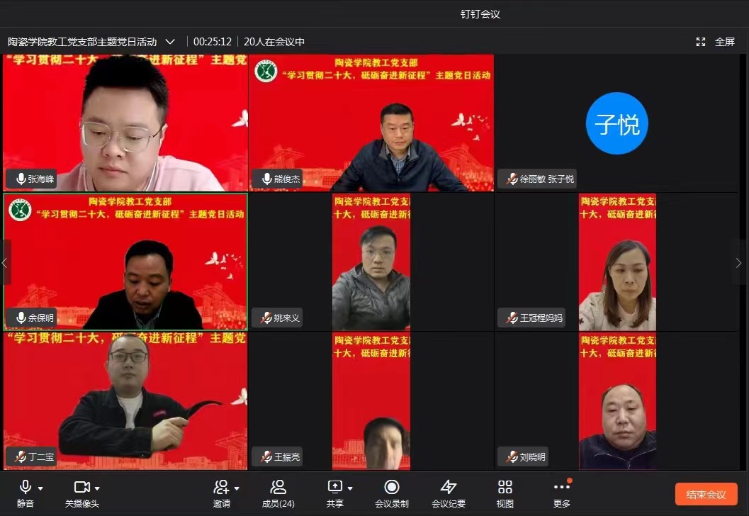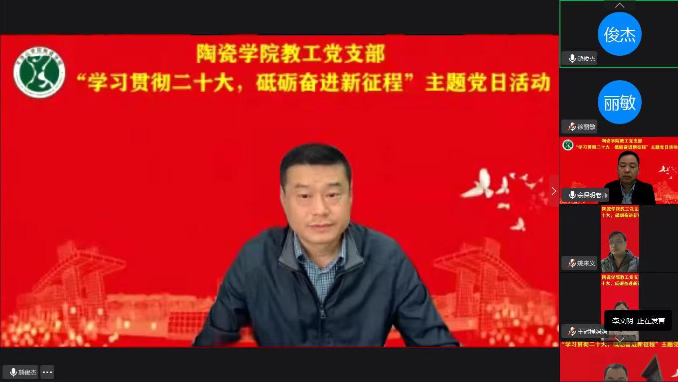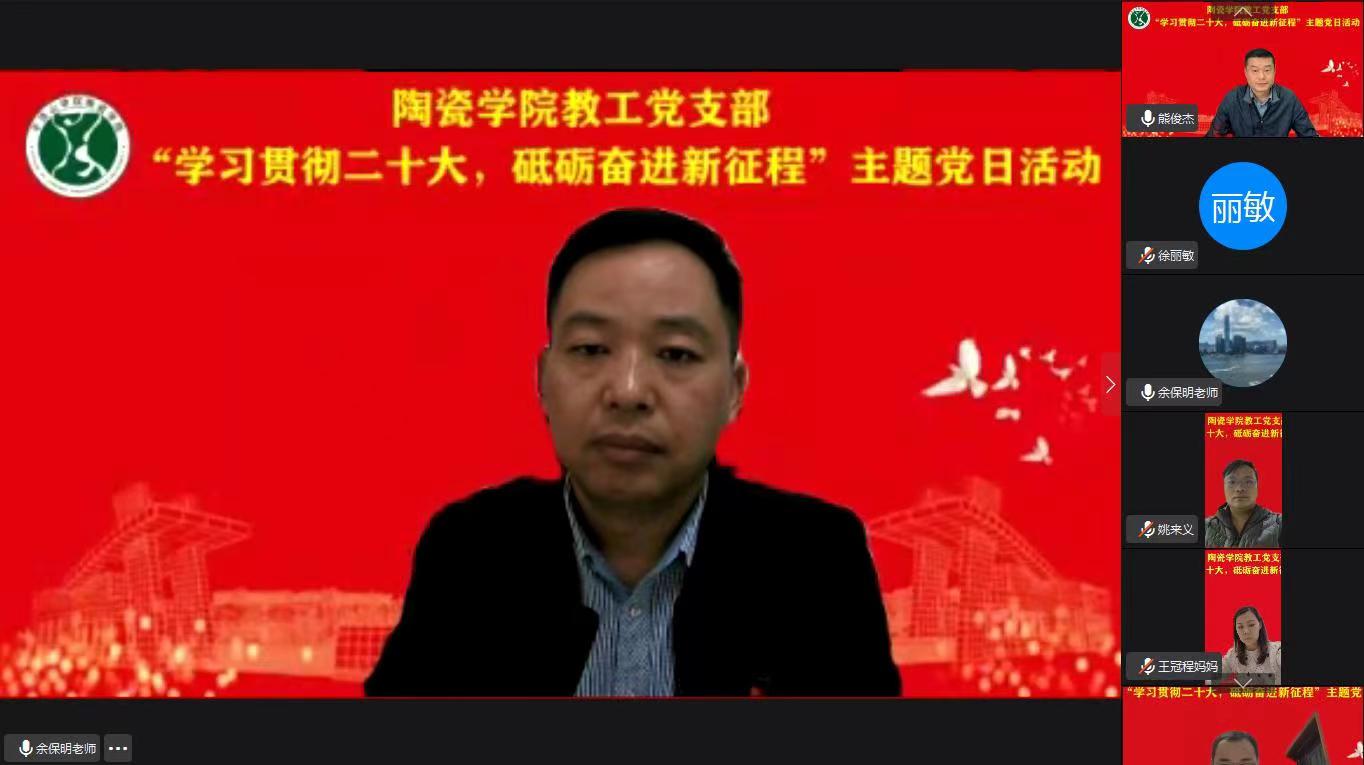 为深入学习贯彻党的二十大精神,进一步增强基层党组织的组织力、凝聚力和战斗力,激励广大党员充分发挥先锋模范作用。11月3日下午,WilliamHill威廉希尔教工党支部以线上会议的形式开展了“学习贯彻二十大,砥砺奋进新征程”的主题党日活动。会议由教工党支部书记余保明主持,全体教工党员参加会议。