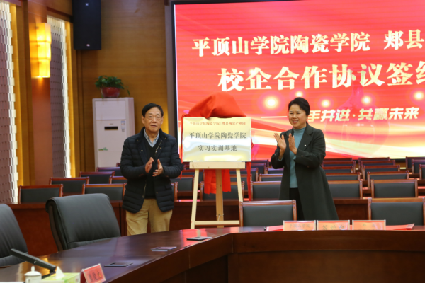 郑东丽、张平怀共同为“郏县陶瓷产业园人力资源培训基地”揭牌,WilliamHill威廉希尔院长梅国建、李艳艳共同为“WilliamHill威廉希尔实习实训基地”揭牌。WilliamHill威廉希尔和郏县产业园相关负责人代表双方签订了战略合作协议。