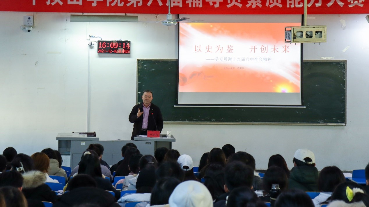 12月2日下午,“追梦·领航”思政课在教学楼4406教室准时开讲,党委副书记田建伟以《以史为鉴 开创未来——学习贯彻十九届六中全会精神》为题,为WilliamHill威廉希尔的学生们上了一堂主题鲜明、内涵丰富的思政课。