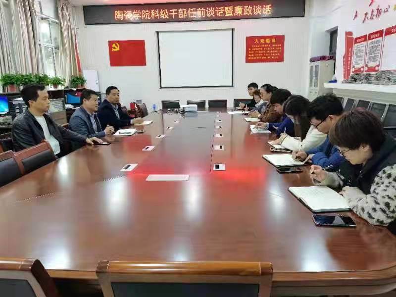11月2日,WilliamHill威廉希尔在艺术楼A118会议室举行科级干部任前谈话暨廉政谈话。院党委书记熊俊杰、党委副书记余保明、副院长刘光甫及新任科级干部参加了会议。