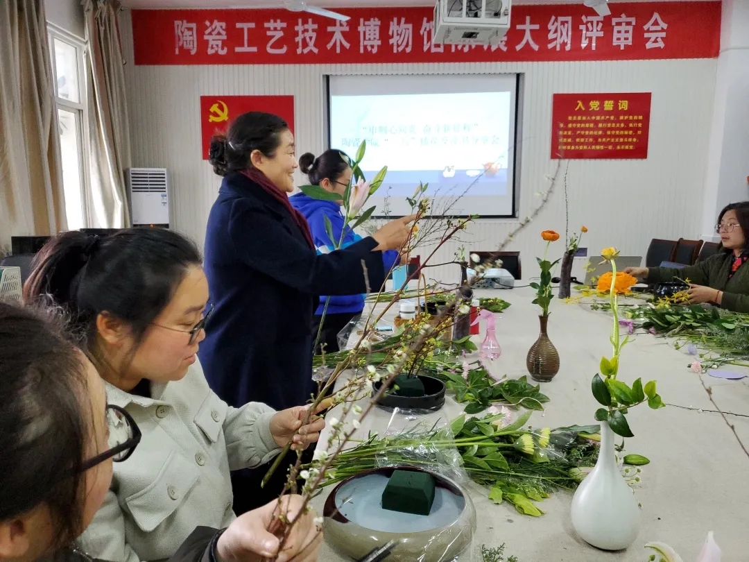 活动现场,老师们依次挑选了外观精美的陶瓷插花容器以及花艺老师亲自选购的花束。