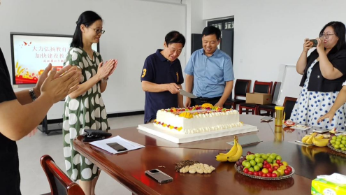 座谈会上,院长梅国建为全体教师对学院的发展做出的贡献表示衷心的感谢,鼓励大家在工作中继续努力奋进,为学院的未来发展贡献更多的智慧和力量。在大家的掌声中,梅国建为大家切蛋糕,与老师们共同分享着这份承载着满满的关怀与祝福的节日蛋糕。