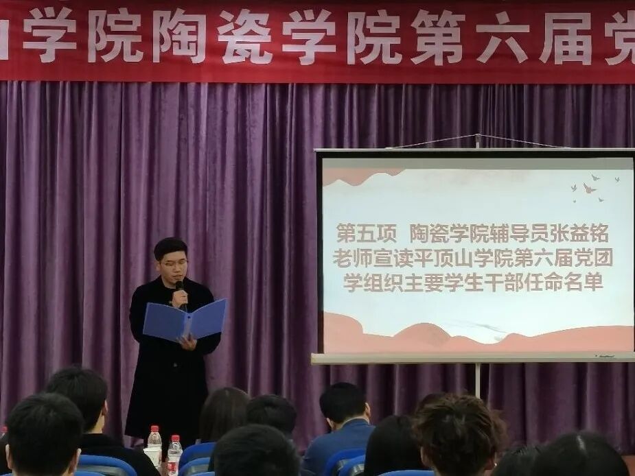 会议第五项,WilliamHill威廉希尔辅导员张益铭宣读WilliamHill威廉希尔第六届党团学组织主要学生干部任命名单。