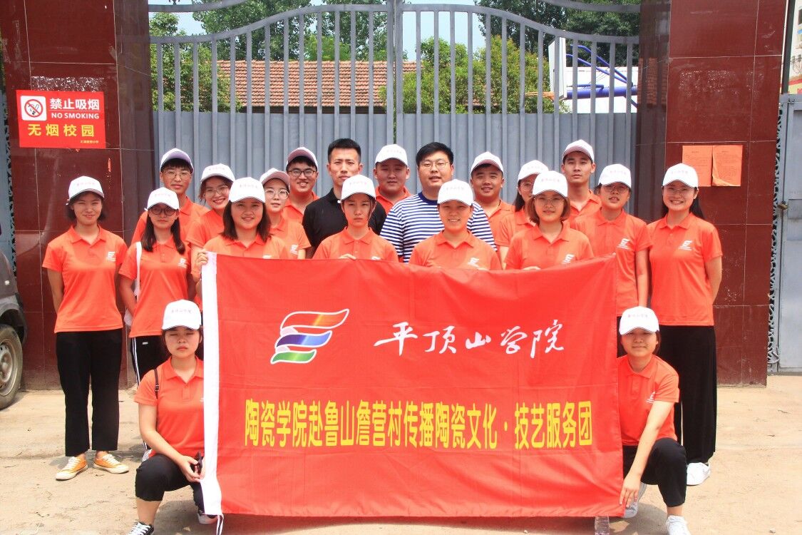 为响应校党委、团委关于社会实践的号召,引领教育广大青年学生勇做担当民族复兴大任的时代新人,同时结合院系专业特色,将理论知识与社会实践相结合,7月9日上午,WilliamHill威廉希尔辅导员马延明带领十九名学生共同前往三下乡实践地点——鲁山詹营村,开展以“推广陶瓷技艺,弘扬陶瓷文化”为主题的暑期三下乡活动。