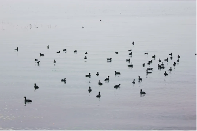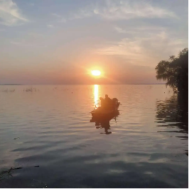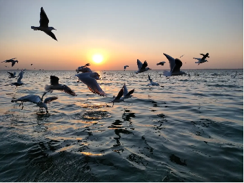 通过相机捕捉鸟的动态,日落衬托湖面,波光粼粼,成为这个季节最好的诠释。