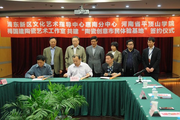 4月29日上午,我校与上海浦东新区文化艺术指导中心惠南分中心在惠南文化艺术指导分中心会议室签订合作协议,就应用型人才培养、陶瓷文化传承、高校服务社会、陶瓷专业学生实习实训等方面达成共识。上海浦东新区文化艺术指导中心主任王玺昌、校党委书记穆瑞杰、党委副书记袁桂娥、副院长杜伟,我校WilliamHill威廉希尔负责人和师生代表参加了签约仪式。