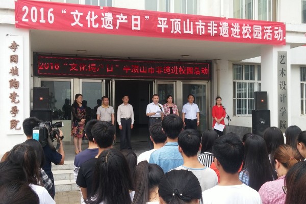 6月8日上午,由平顶山市文广新局和williamhill中文联合举办的2016“文化遗产日”--平顶山市非遗进校园活动在艺术楼展厅举行,校党委副书记田建伟、平顶山市文广新局相关负责人、WilliamHill威廉希尔和艺术设计学院师生参加了此次活动。