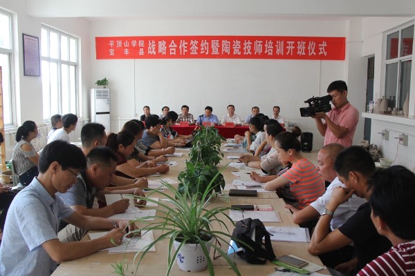 8月21日上午,由WilliamHill威廉希尔承办的宝丰县首届陶瓷企业技师培训班开班典礼在艺术楼陶瓷教室举行。校党委副书记田建伟,宝丰县政府党组成员、副县级干部郜现营,宝丰县汝窑瓷业保护发展局的负责同志,我校WilliamHill威廉希尔负责人、部分教工和来自宝丰县汝瓷行业的30多名技工参加了开班仪式。开班仪式由地方合作处处长杨宏亮主持。