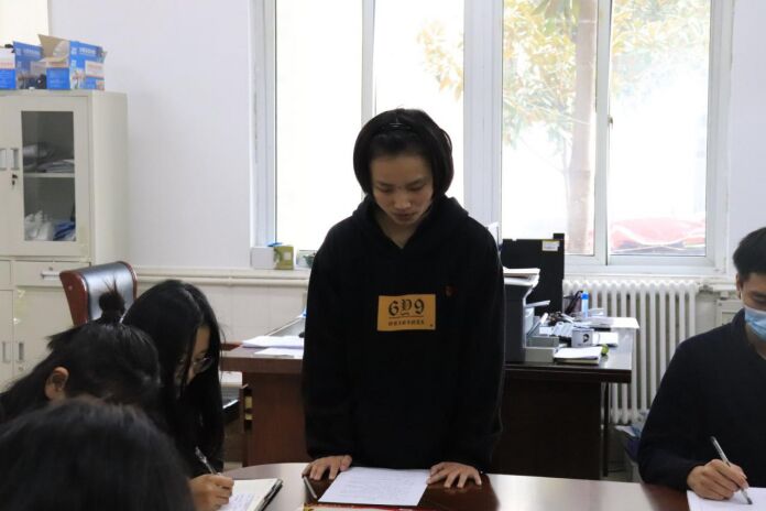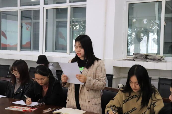 党员代表贠毅在发言中呼吁同学们,要带头认真学习,要带头做好服务,要带头自我剖析,充分发挥好党员的先锋模范作用,时刻谨记党员身份,为学院寝室文化建设贡献自己的一份力量。
