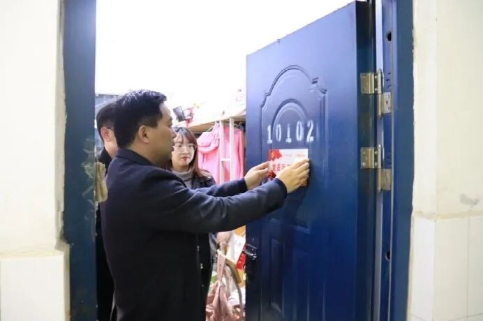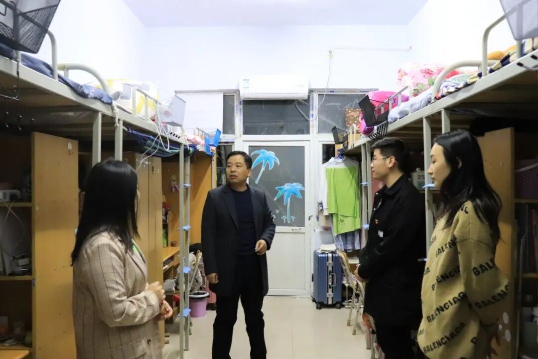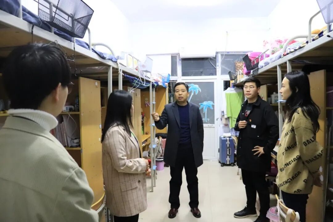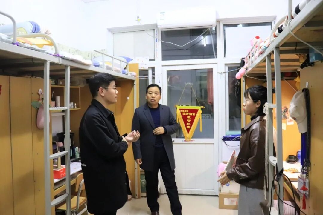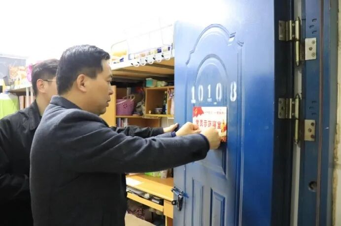 WilliamHill威廉希尔党总支副书记余保明、辅导员张益铭考察党员示范寝室,余保明亲自为党员示范寝室挂牌。