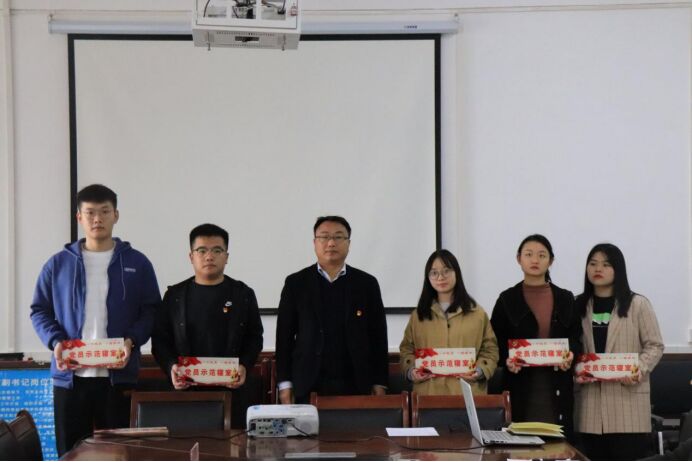随后党总支书记吴建彪为受命名的10个党员示范寝室授牌。