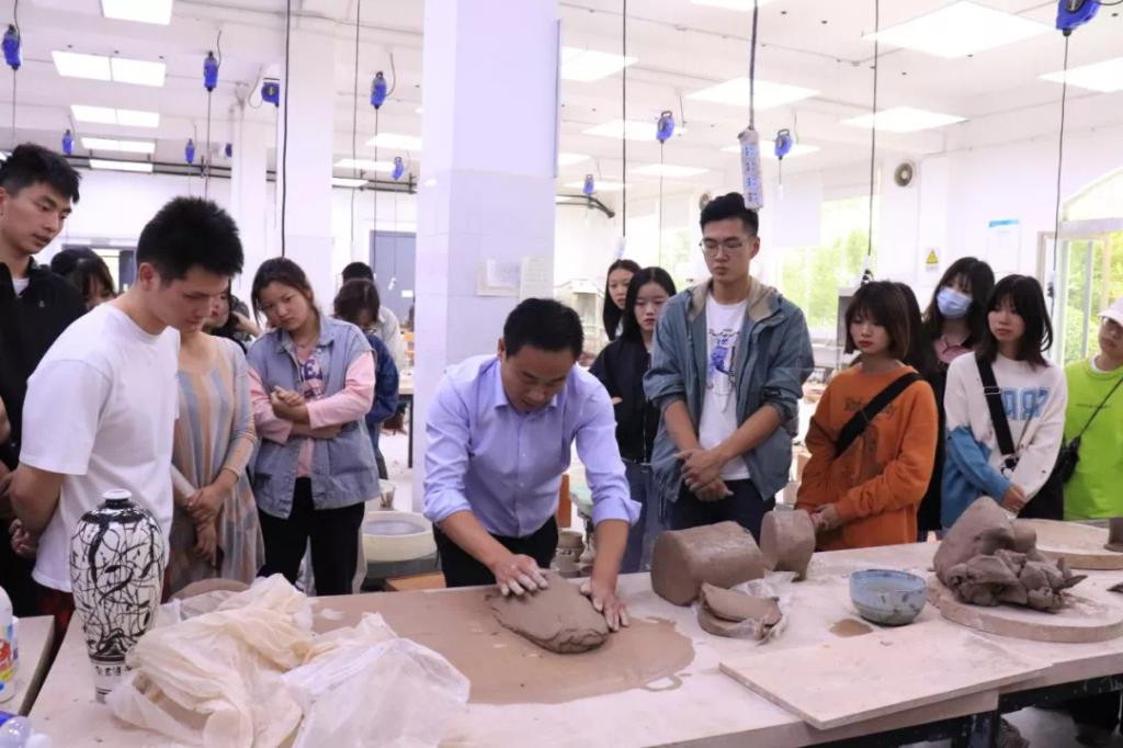 10月8日,WilliamHill威廉希尔行业老师王文珂、辅导员张益铭带领陶瓷艺术设计专业学生一行15人,到郑州轻工业大学禹州校区开展陶瓷专业交流活动。郑州轻工业大学陶瓷美术学院主任张丽娟老师及60余名学生参与此次专业交流活动。