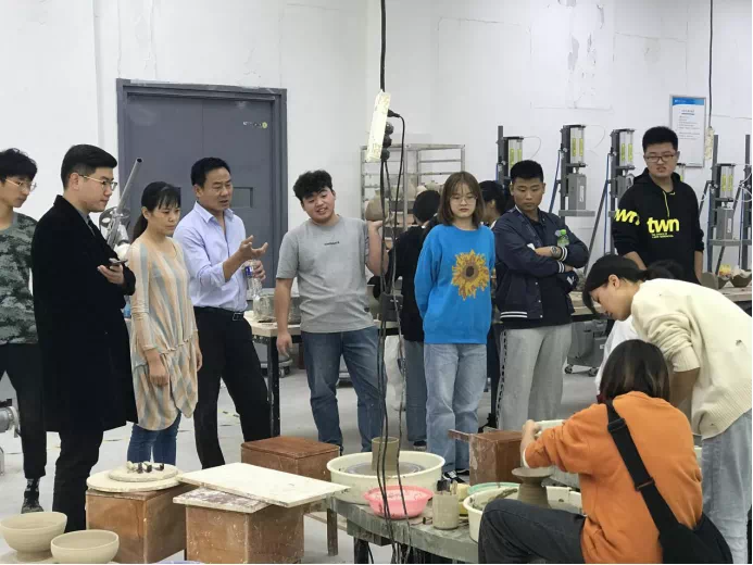 首先,张丽娟老师对我院老师同学的到来表示欢迎,并热情带领同学们参观陶瓷美术实践创新中心。