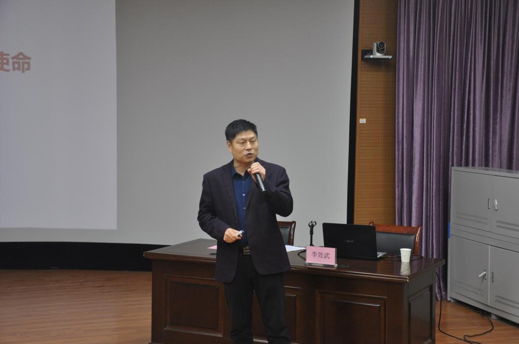 开班仪式结束后,马克思主义学院党总支书记李效武同志作了题为《再谈中国共产党的初心和使命》的首场报告。