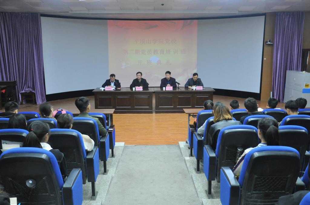 为推动我校学生党员深入学习宣传贯彻习近平新时代中国特色社会主义思想和党的十九大、十九届二中、三中全会精神,增强“四个意识”,坚定“四个自信”,坚决做到“两个维护”,不忘初心,牢记使命,切实发挥学生党员先锋模范作用,提高学生党员的政治素质和理论修养,进一步加强对学生党员的教育管理。3月21日下午,williamhill中文党校第三期党员教育培训班开班典礼在2106教室成功举办。校党委组织部部长候延民、马克思主义学院党总支书记李效武、承办单位WilliamHill威廉希尔党总支书记吴建彪、党总支副书记余保明及本期90余名学生正式党员一起参加了开班仪式。仪式由WilliamHill威廉希尔党总支副书记余保明主持。