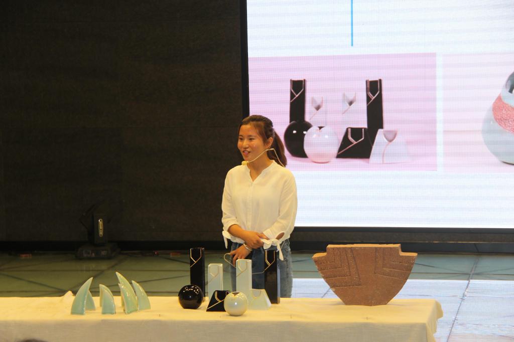 答辩会分为毕业生作品创意陈述、提问与答辩、答辩人总结等环节。毕业生按事先抽签顺序,结合实物与PPT向大家阐述作品的设计灵感、制作流程、内涵创新等内容。评委老师针对学生的汇报内容,结合陶瓷设计专业相关理论知识进行提问,学生现场进行回答。专家评议小组根据每个毕业生的作品设计质量、答辩表现等综合指标给出相应成绩。最后,担任本次答辩委员会主席的陈涛教授做了整体点评,其中,王聆燃同学的作品得到了评委们的一致认可,被评为最优作品。