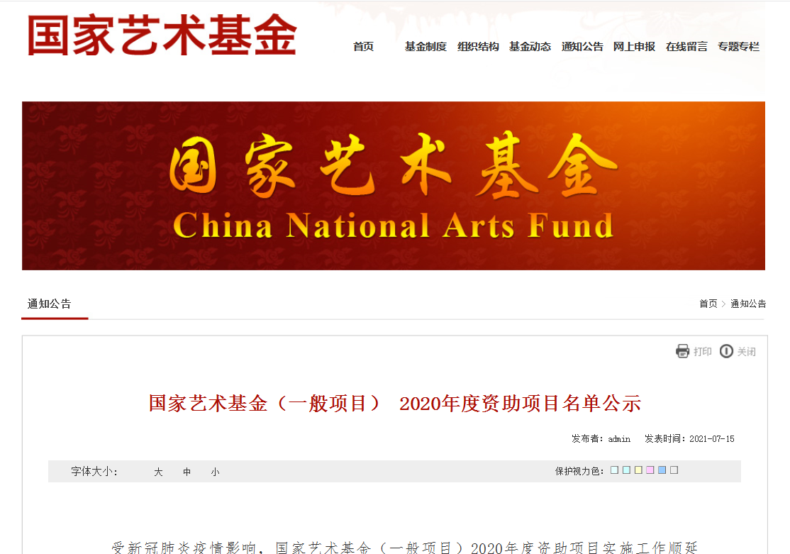 近日,“国家艺术基金(一般项目)2020年度项目资助名单”正式公布,经国家艺术基金专家评审,共评选出立项资助项目598项,其中,我院副院长刘光甫副教授申报的工艺美术创作项目《和》成功获批,实现了我校在国家艺术基金项目申报上的突破。