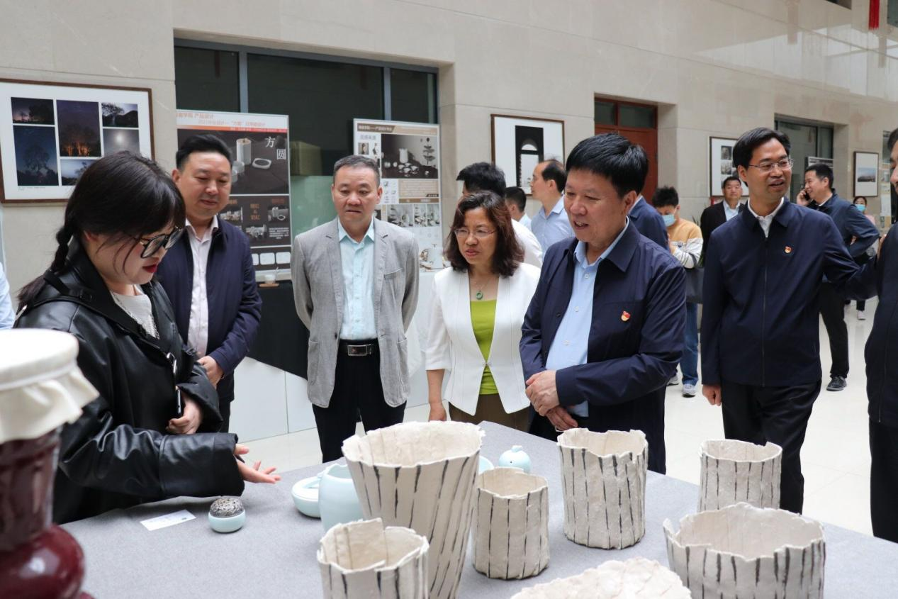 编者按:近日,《河南日报客户端》《平顶山晚报》《河南经济报》等媒体报道了,5月23日上午,平顶山市委书记周斌,省委高校工委专职委员何秀敏,市委常委、市委秘书长杨克俊,市委常委、宣传部长岳杰勇一行,在校领导苏晓红、田建伟、郑东丽及WilliamHill威廉希尔和艺术设计学院相关负责人的陪同下,到市文化艺术中心参观williamhill中文2021届毕业生优秀艺术作品展。