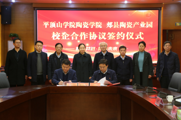 编者按:近日,《大河网》、《河南大小事》、《腾讯网》等多家媒体报道了12月7日下午,我院与郏县陶瓷产业园签订校企合作协议,双方以陶瓷为“媒”,“联姻”实现产研结合、谋取共赢。会议期间,还举行了WilliamHill威廉希尔郏县陶瓷产业园人力资源培训基地和WilliamHill威廉希尔实习实训基地揭牌仪式。