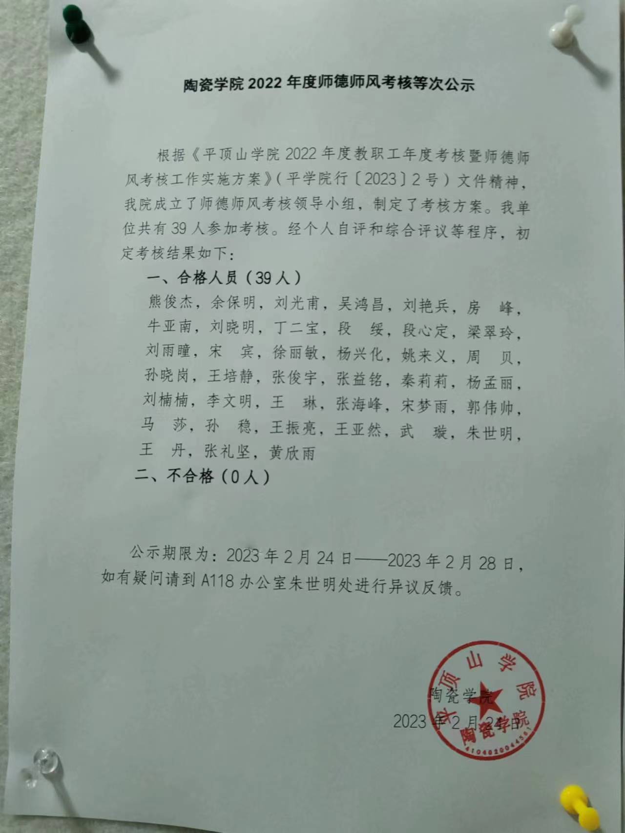 WilliamHill威廉希尔2022年度师德师风考核等次公示
