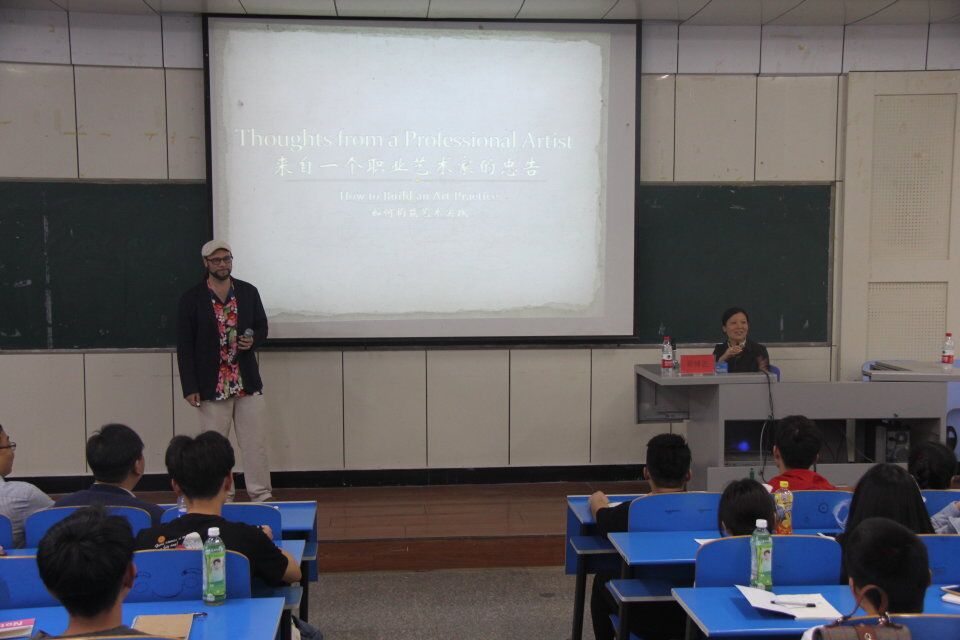 5月4日下午,美国商业艺术家蒋博艺老师应约来到湖滨校区,他以职业艺术家的身份为WilliamHill威廉希尔做“来自一个职业艺术家的忠告——如何构筑艺术实践”的专题讲座。讲座在2号教学楼206教室举行,WilliamHill威廉希尔副院长吴鸿昌老师主持讲座,WilliamHill威廉希尔教师代表和全体学生300余人参加讲座。