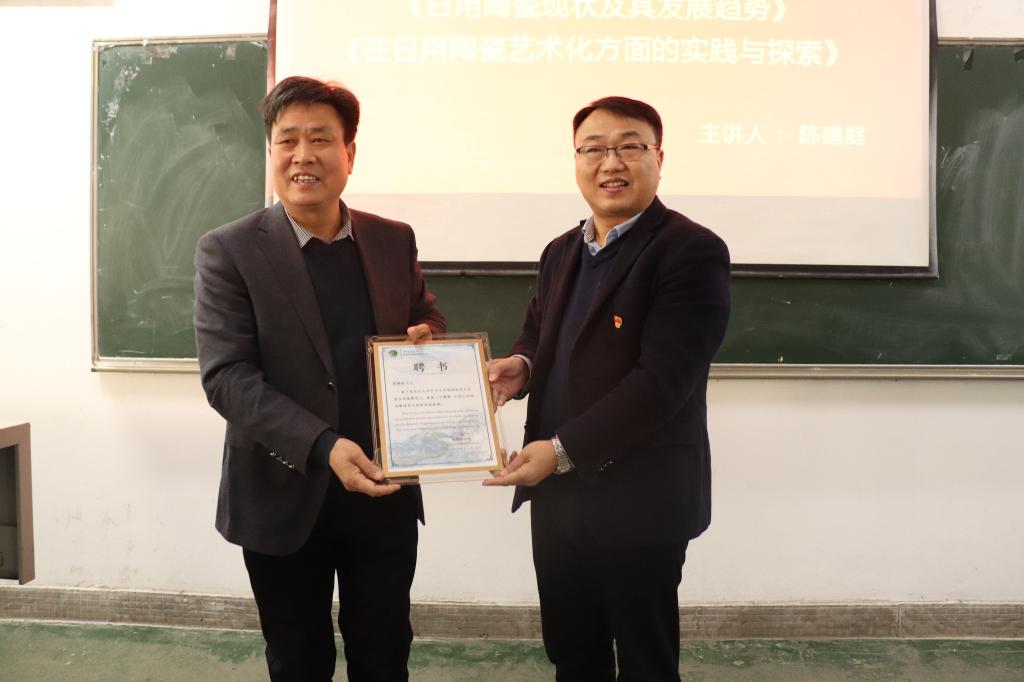 12月5日下午,河南白玉陶瓷有限公司董事长陈建庭应邀来到我校,在4号教学楼306教室作了一场题为《日用陶瓷现状及其发展趋势及在日用瓷艺术化方面的实践与探索》为主题的学术讲座,讲座由WilliamHill威廉希尔副院长吴鸿昌主持。