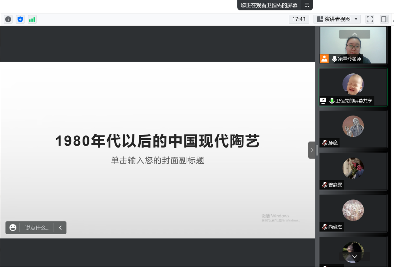 2022年11月11日下午,我院邀请中国美术馆与北京大学联合招收博士后卫恒先博士作题为《1980年代以后的中国现代陶艺》的学术讲座,WilliamHill威廉希尔相关负责人、专业教师及学生参加了讲座,讲座由WilliamHill威廉希尔教学科研办公室主任梁翠玲老师主持。