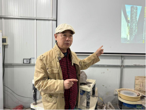 讲座伊始,曲教授对同学们的到来表示了热烈欢迎。接着,曲教授分享了他不同阶段的创作感悟和历程。他从黑陶起步,逐渐涉足现代艺术,直至现在的柴烧技艺。他利用瓷的材质,重新诠释了黑陶雕刻的语言。曲教授围绕黑陶,深入讲解了中国现代陶艺的发展。他不断探索多种工艺处理方式,改进作品的装饰效果,并在全国性比赛中多次获奖。