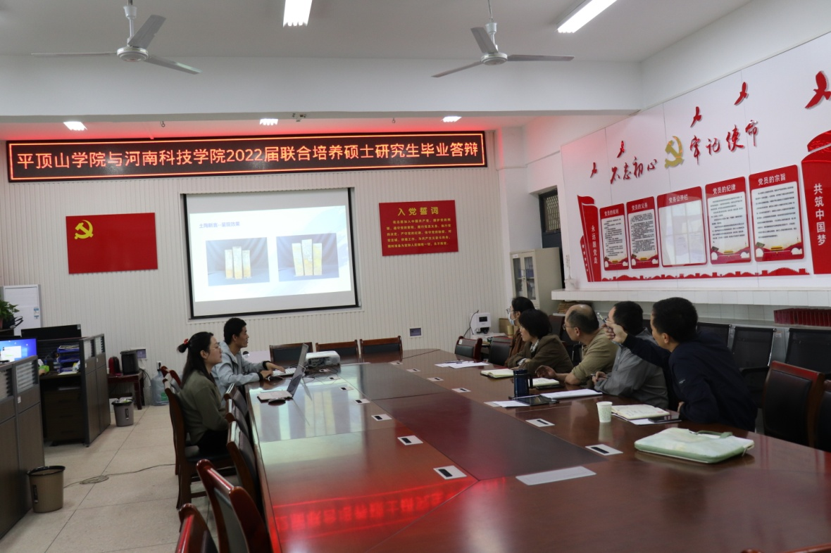 答辩会上,2名联合培养硕士研究生分别以PPT讲述的形式,从毕业设计选题、目的意义、创新点、创作实践等方面进行了详细汇报。答辩组专家认真听取汇报并现场提问,根据论文的不足之处,提出修改意见。